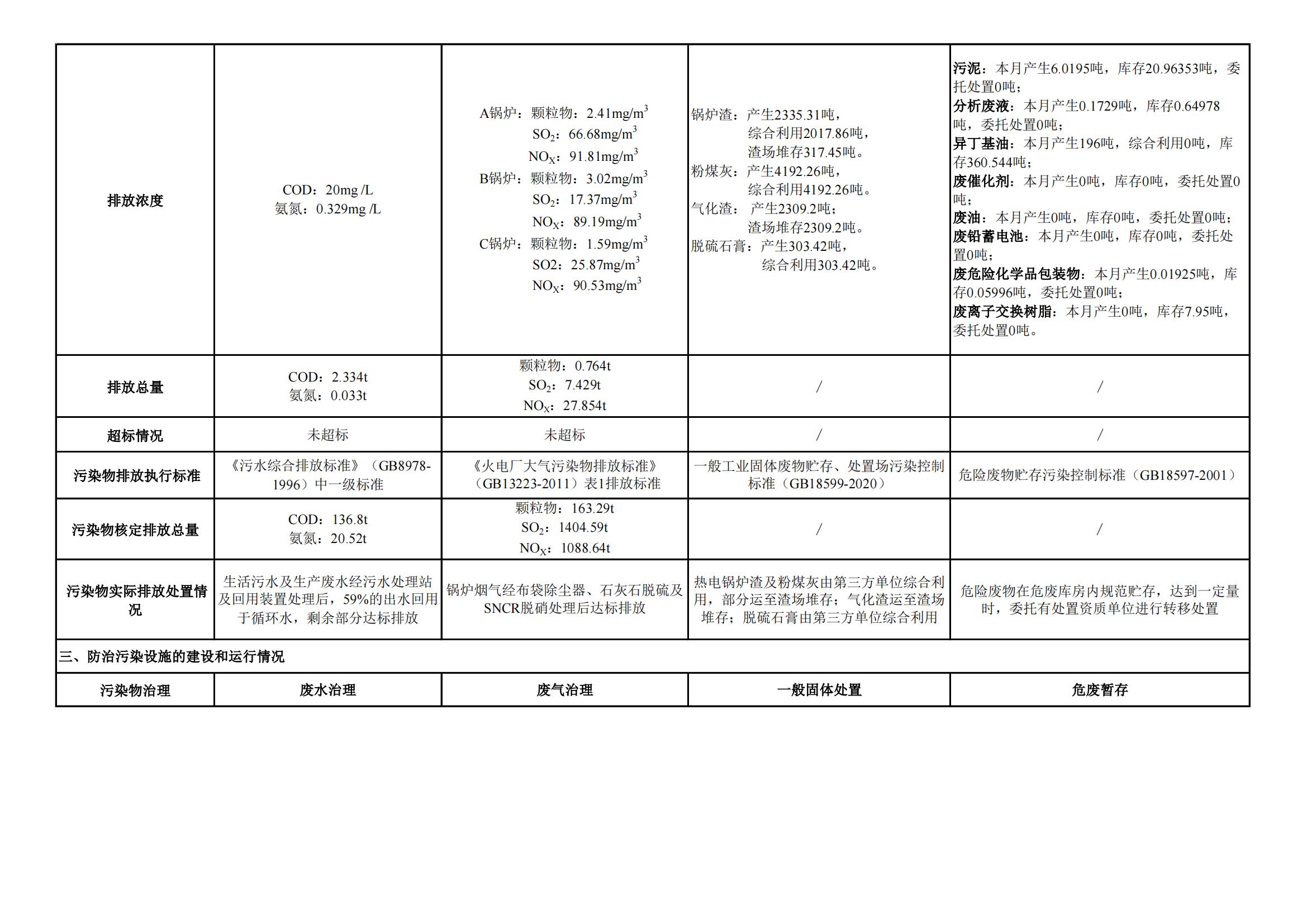 煤制甲醇分公司環(huán)境信息公開內(nèi)容(2022年4月)
