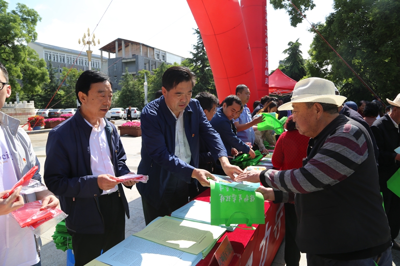 (局領(lǐng)導(dǎo)向現(xiàn)場群眾發(fā)放生態(tài)環(huán)境保護(hù)宣傳資料)